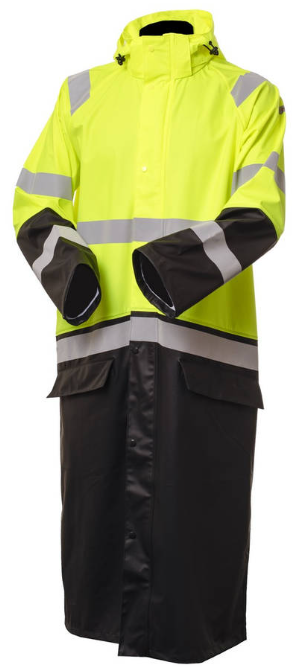 Huomiovärinen pitkä sadetakki kelta/musta EN 20471/EN 343 - 4312
